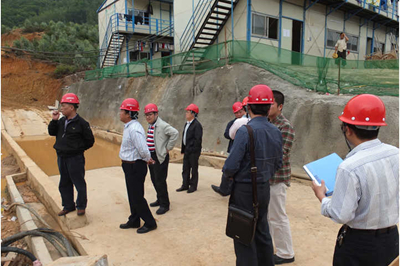 MORE>4月1日,由刘洪文总经理带队的检查组对我公司承建的一桩基础工程进行安全生产检查。该项目总建设用地10万平方米,一期工程采用人工挖孔桩方式浇筑200多根桩。检查组分别对该项目的安全资料、机械设备、临时用电、文明施工等分类进行了详细检查,对该项目部后续施工工作提出了进一步的完善建议。此次安全生产检查,..