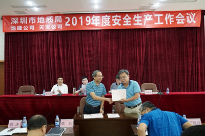 MORE>6月18日上午,深圳市地质局2019年度安全生产工作会议召开,深圳地建公司领导班子,深圳地建公司机关全体在职人员,物业公司正、副经理,深圳地建公司所属二级部门正、副经理、主任工程师参加了会议。 刘都义副总经理向与会人员通报了2018年度深圳地建公司安全生产目标管理考评情况。他强调,当前..