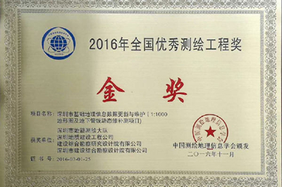 MORE>11月10日,中国测绘地理信息学会2016年度学术年会在南宁召开,会上颁发了全国优秀测绘工程奖。由我司主要承担完成的“深圳市基础地理信息数据更新与维护(1:1000)地形图及地下管线动态修补测项目”荣获全国优秀测绘工程金奖,成绩喜人。 该项目评审材料经专家严格审查、项目答辩、评审..