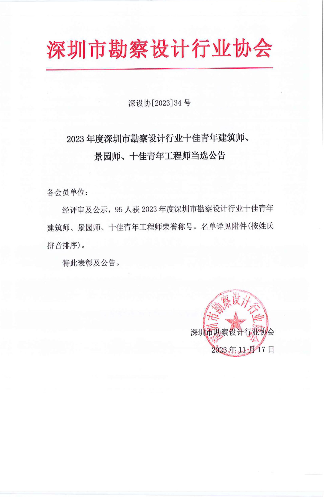 MORE>为激发深圳市勘察设计行业青年工程师的从业荣誉感和工作积极性,推动勘察设计行业健康发展和持续进步,深圳市勘察设计行业协会于今年8月组织开展了“2023年度深圳市勘察设计行业十佳青年建筑师、景园师、十佳青年工程师”评选活动。近日评选结果公示,我公司测绘公司副经理晏晓红同志在众多参选者中脱颖而出,喜..